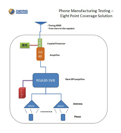 Phone Testing Coverage Solution of GPS-based Repeater; Coverage Area: 800-900 ㎡; Single-point Signal Uniform Test Area: the radius of 5 ~ 10M; Frequency Range: GPS L1 (Choosing other GPS antenna, to get more band signal repeater); Power: 220V AC / 9V DC; System Configuration Amplifier Gain of Repeater : adjustable range: 0dB ~ 35dB.