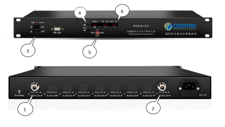 ⑥For the digital display, showing the current gain value of the amplifier, and the voltage of the input and output ports.