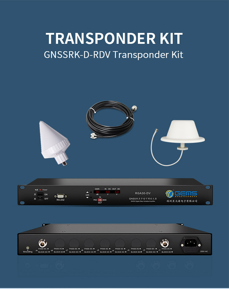 GNSSRK-D-RDV is a single point GPS/Beidou2 repeater, one transmitting antenna transmit GPS/Beidou2 signal. This solution offer adjustable test signal to receiver.