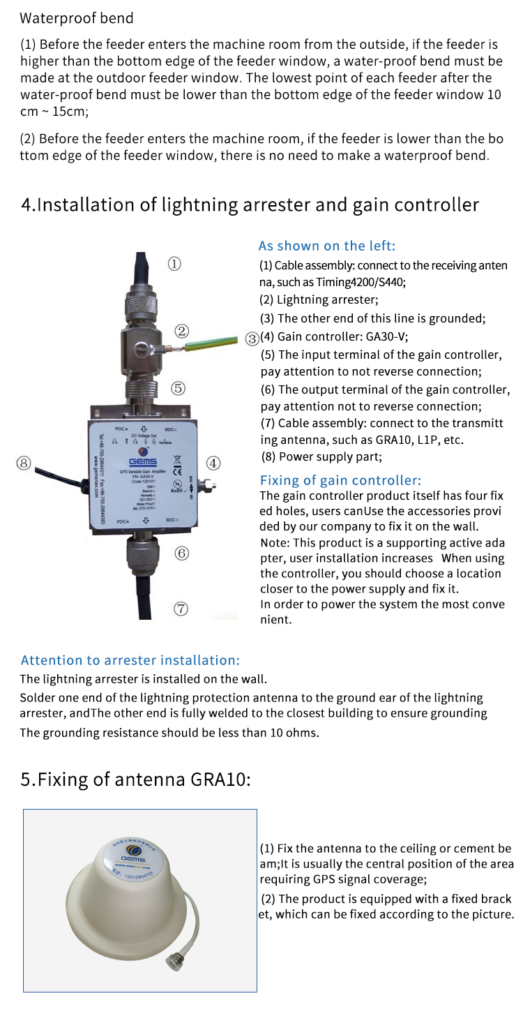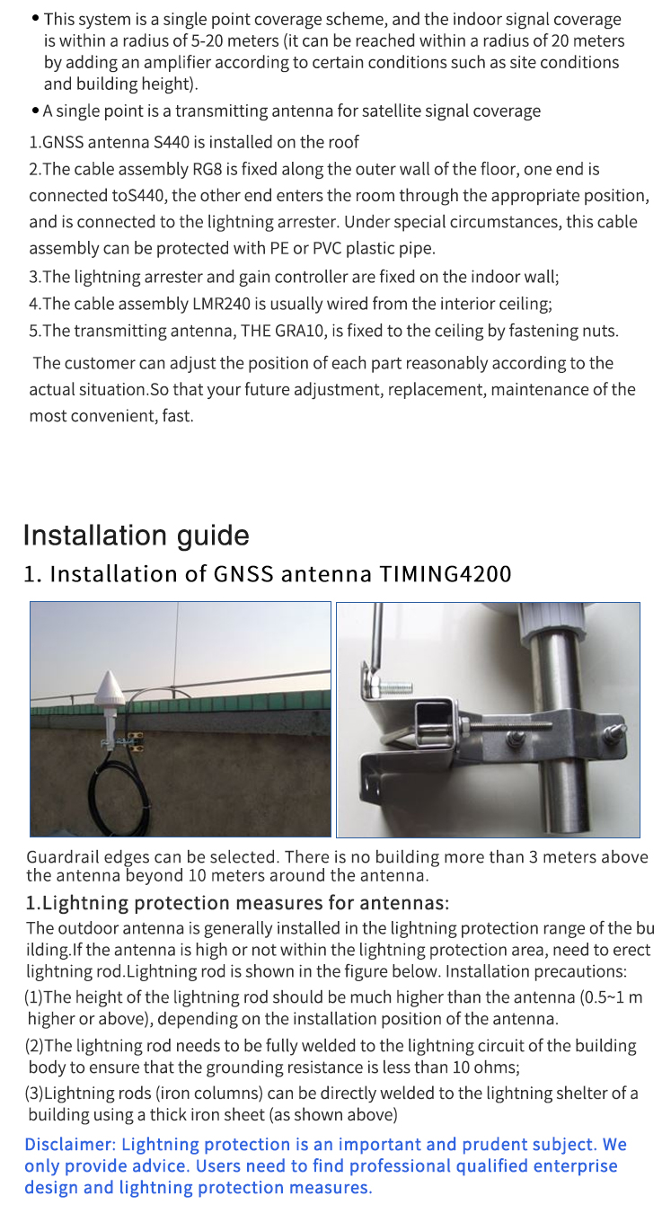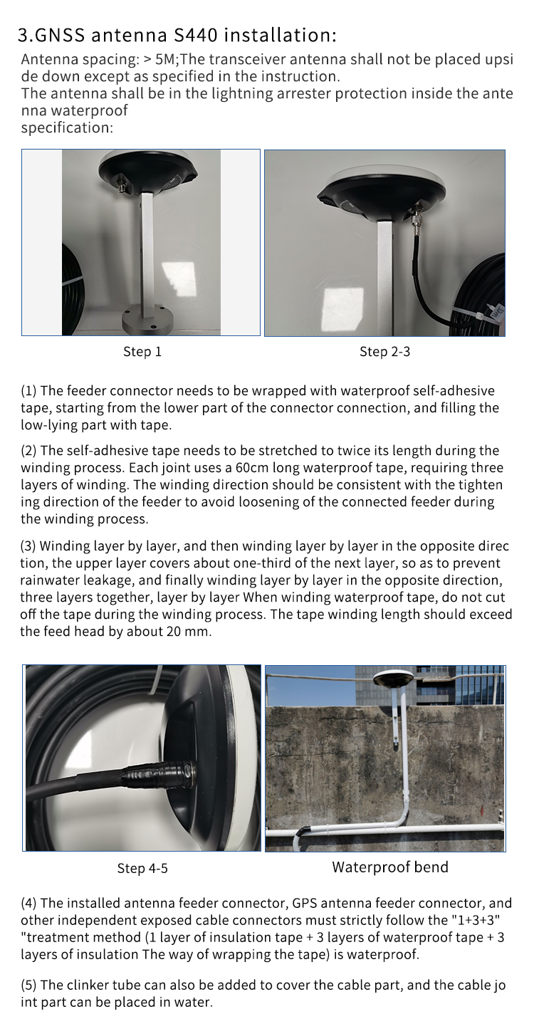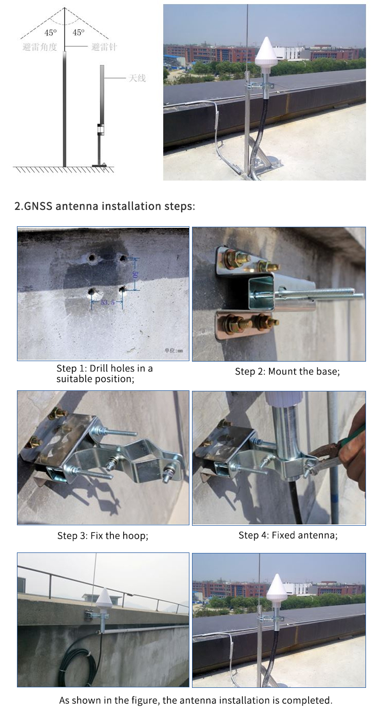 1. GPS/GLONASS/Beidou2/Galileo…antenna(S440) be installed on roof of the building;