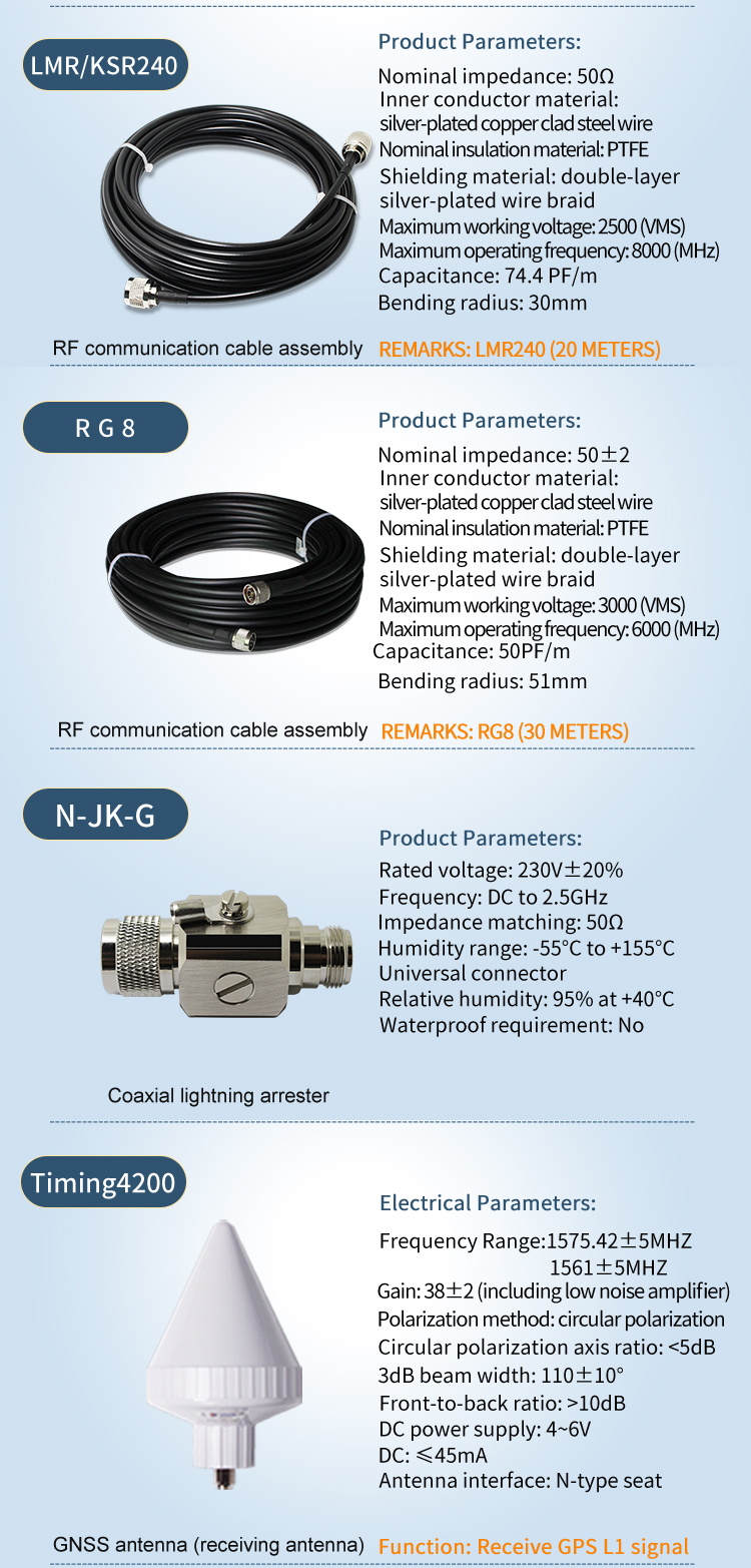 2. Cable assembly RG8 fixed along the out wall, one terminator connects TIMING 4200,the another to protector at the appropriate place. In some special environment, select PE or PVC material plastic pipe to protect the cable assembly is quite sensible;
