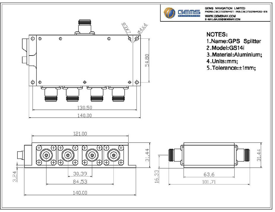 The GS14i IS a high performance GPS signal splitter that can be configured to monitor the GPS antenna current , providing and alarm indication if the antenna is not operating to spec. The GS14i also features an optional antenna DC bias “Pick‐&Choose” circuit which allows for active antenna DC input to be applied to any or all of the RF outputs, With this option ,one DC voltage will be chosen to power the antenna while the other input will be switched to DC loads, if the selected DC bias input should fail, the DC bias will be automatically switched to another DC input so as to ensure an uninterrupted supply to the active antenna. The GS14i man be configured as a passive or an active device, giving the network engineer the flexibility to specify the device gain and port‐to‐port isolation, The GS14i may also be ordered with surge protection on all five ports and in a sealed housing sufficient for many years of Operation in external environments.