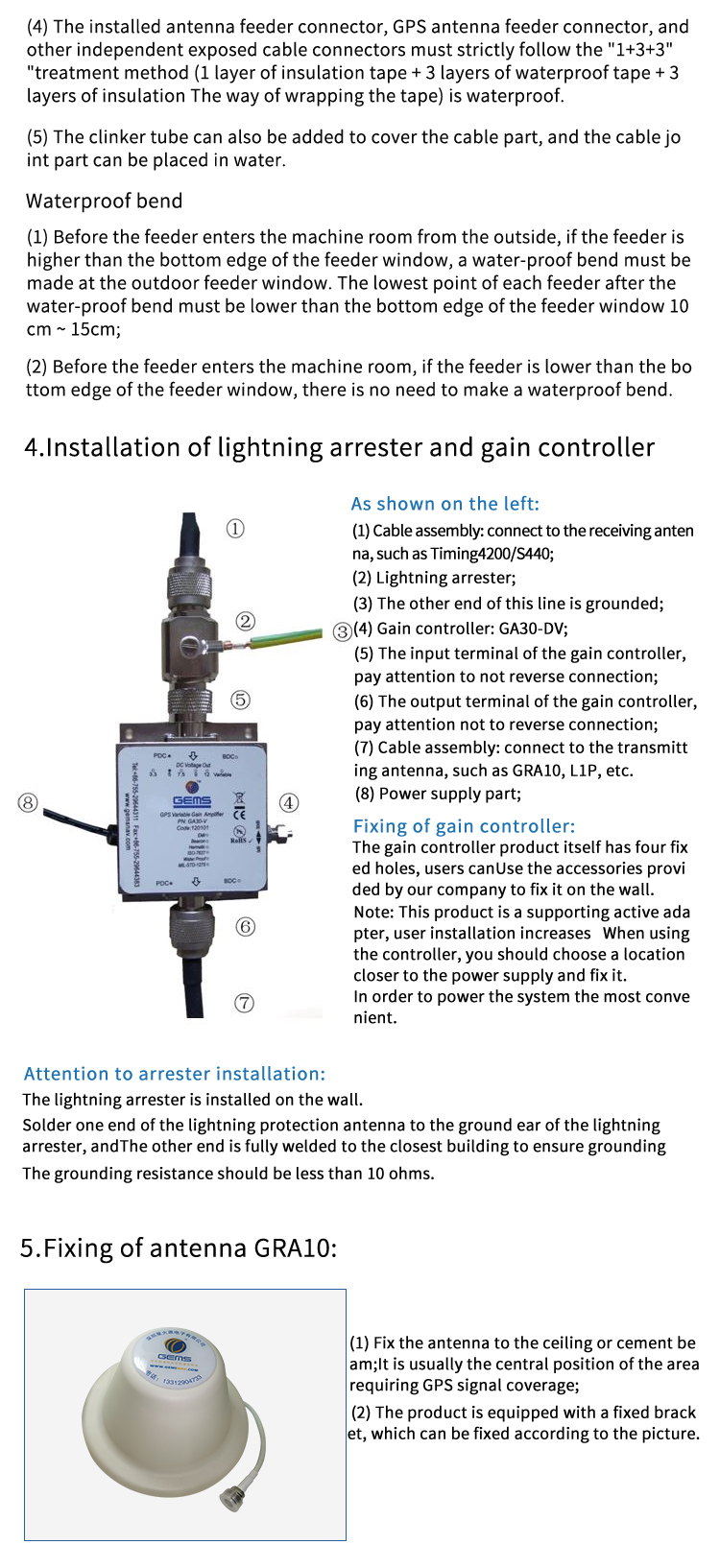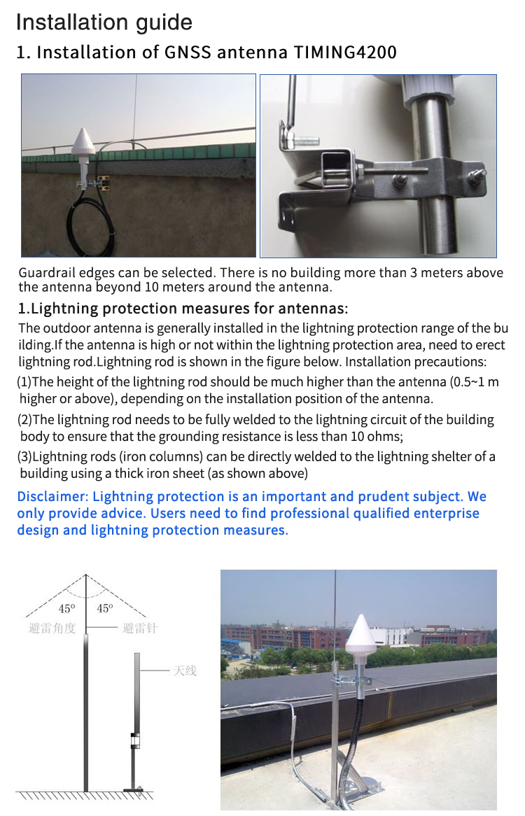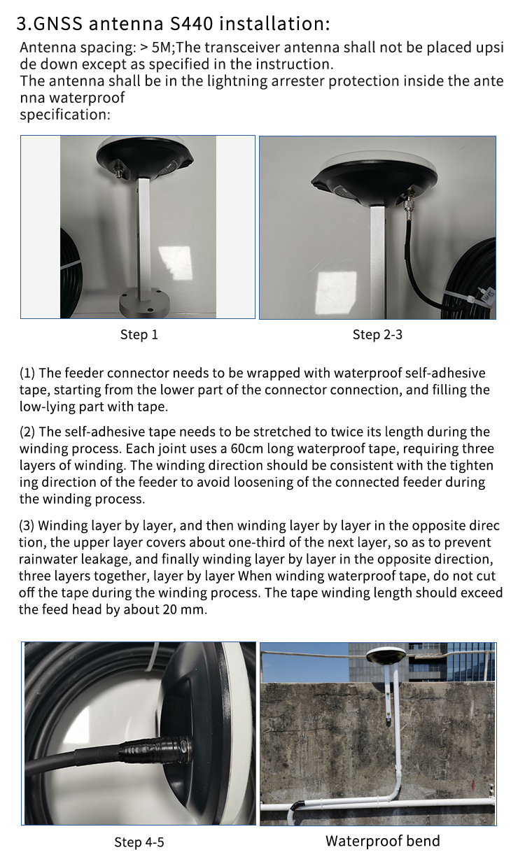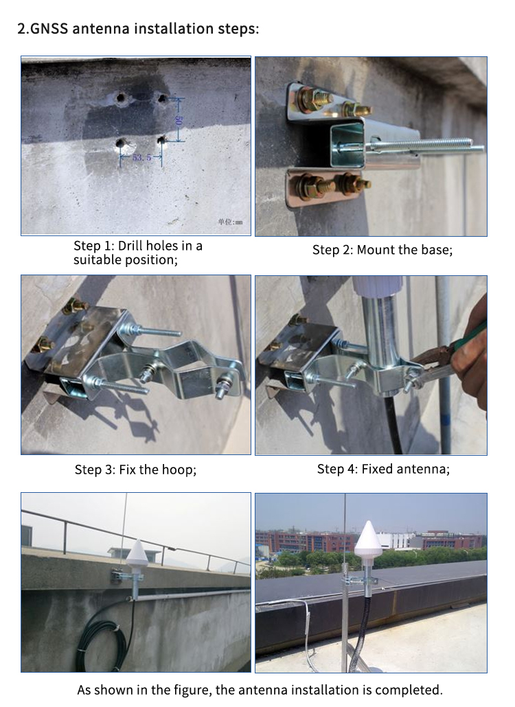 1. GPS/GLONASS/Beidou2/Galileo Antenna(S440) be installed on roof of the building;