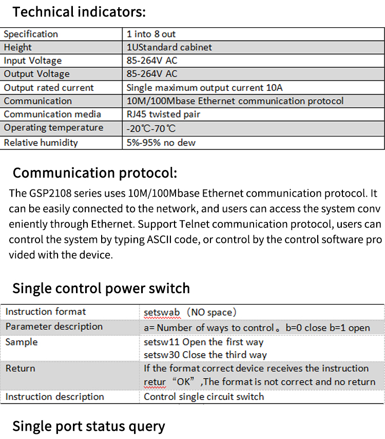 GSP2108 is a 220V AC 1 into 8 power supply system, controlled by 8 high-current solid-state relays 8 output AC off, output current real-time monitoring, and set the custom current alarm.
